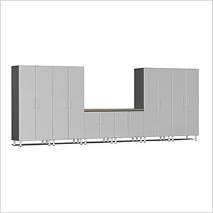 Ulti-MATE Garage Cabinets 7-Piece Garage Cabinet System with Bamboo Worktop in Stardust Silver Metallic