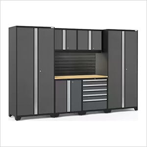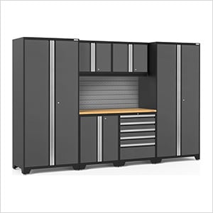 NewAge Garage Cabinets PRO Series Grey 7-Piece Set with Bamboo Top and Slatwall
