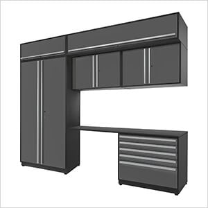 Proslat Garage Cabinets 7-Piece Glossy Grey Cabinet Set with Silver Handles and Powder Coated Worktop