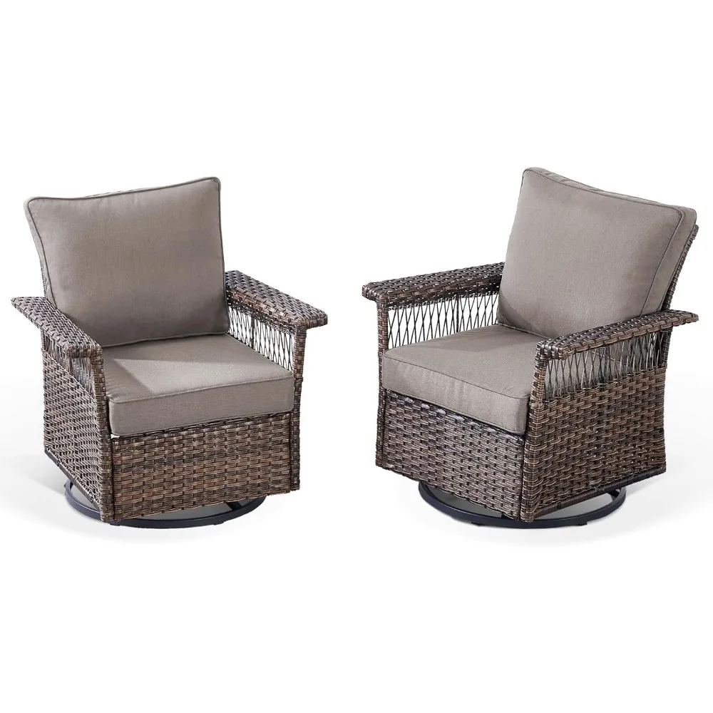Patio Swivel Chairs Wicker Chairs PE Rattan Gliders with High Back Deep Seating Chairs Garden Sunroom Deck PorchBalcony Backyard