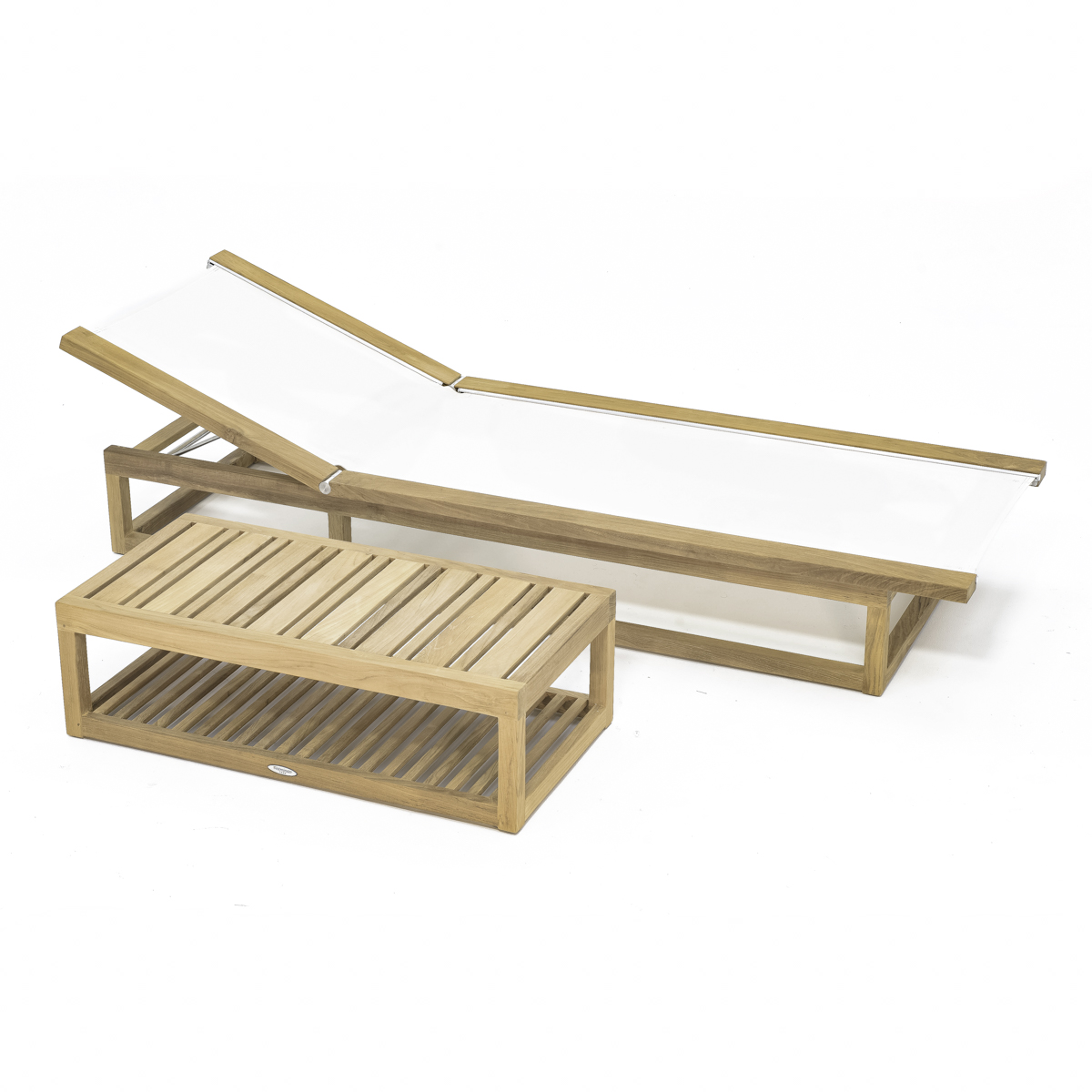 This high-style design sun lounger uses classic material pairings: premium eco-friendly grade 'A' teak from sustainable plantations and high performance UV tear resistant Textilene®. Ideal site furnishing for high end resorts and hotels.  Read more