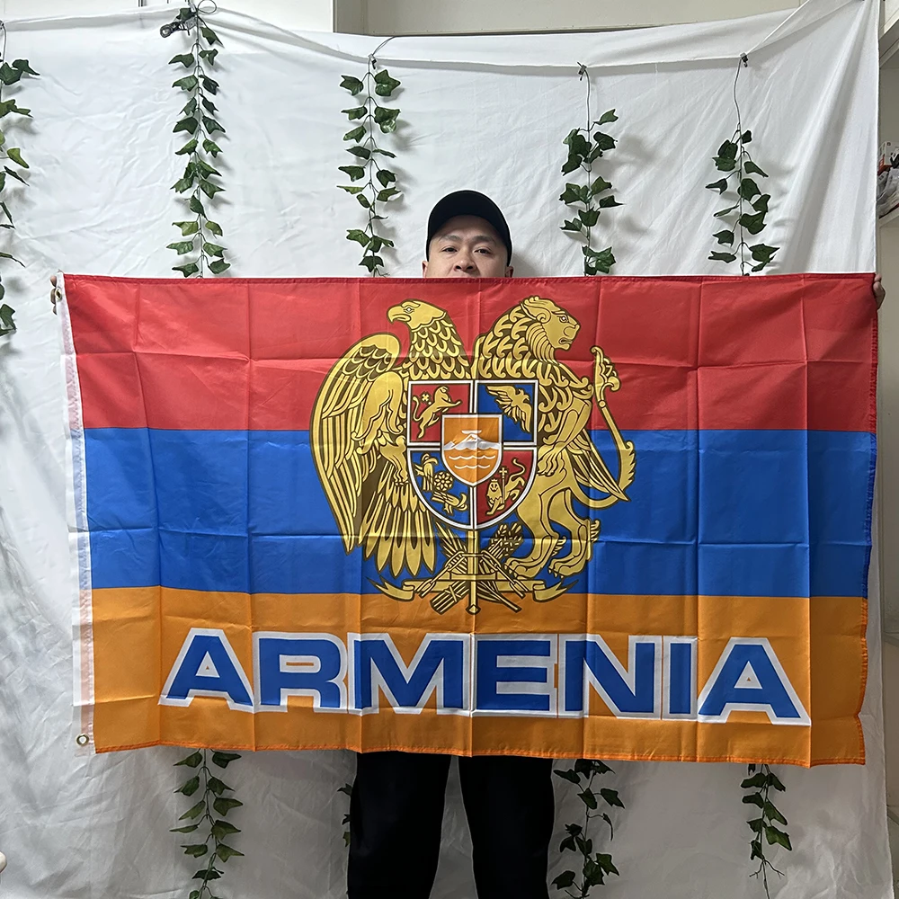 TIKI FLAG Armenia Emblem flag 90x150cm polyester hanging Armenia National Emblem flag / Armenian Flag for home decoration