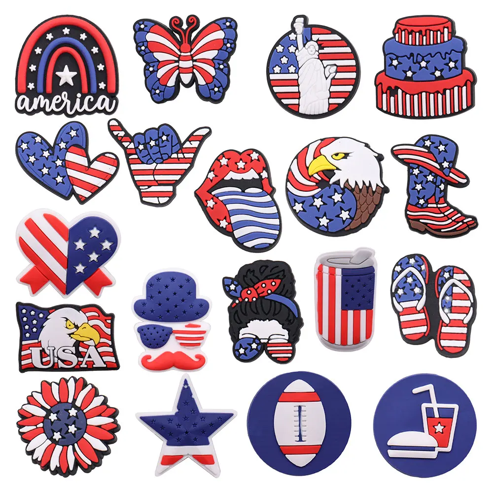 1-19Pcs Rainbow Star Eagle PVC Garden Shoe Charms USA Statue of Liberty Designer Accessories Fit Adult Backpack