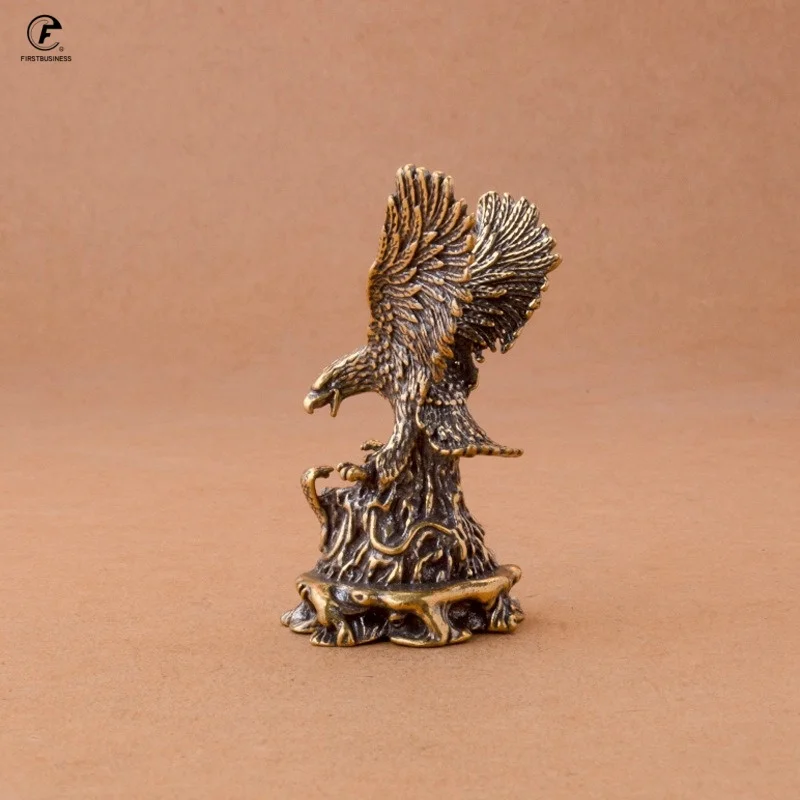 Eagle Statue Miniature Sculpture Handmade Crafts Ornament Vintage Copper Bird Figurine For Interior Home Desk Animal Decoration