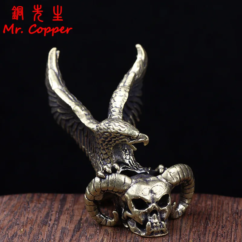 Solid Brass Eagle Grab Goat Horns Skull Head Small Statue Desktop Ornaments Vintage Animal Miniatures Figurines Home Decorations  Read more