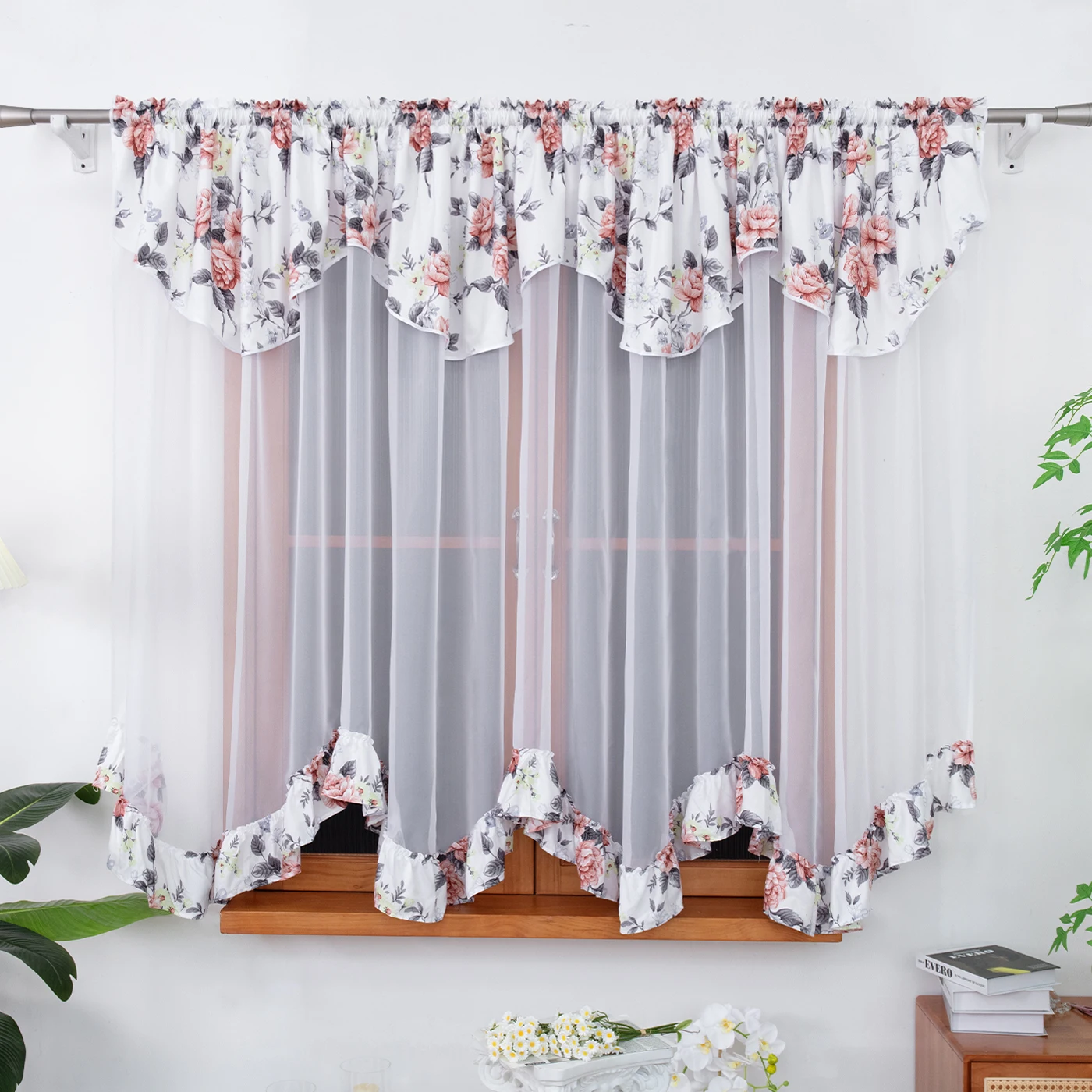 1PC Rural style floral pattern curtains semi transparent filter screen drapes for living room bedroom holiday wedding decoration