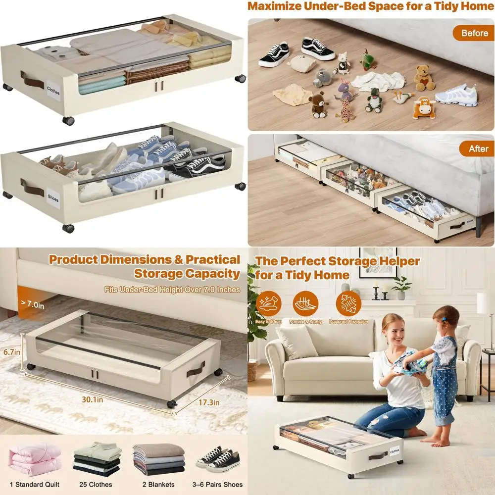 Extra Large 60L Rolling Underbed Storage Drawers with Transparent Lids for Clothes and Accessories  Read more