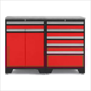 This NewAge Products tool cabinet storage set is built with robust 18-gauge steel frames and 19-gauge double-wall drawer fronts, paired with a stainless steel work surface.