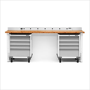 This Gladiator garage workbench system in white spans 8 feet and will get you organized in no-time. These cabinets are fully-welded with minimal assembly required.