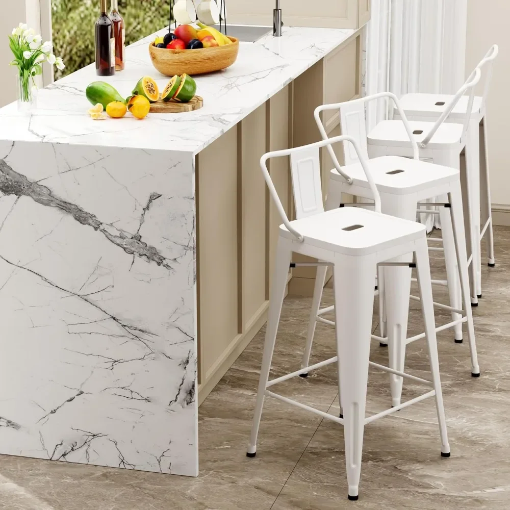 Metal Barstools Set of 4 Industrial Bar Stools with Backs, Indoor-Outdoor, Counter Height, 24 inch