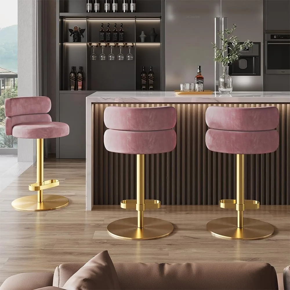 Velvet Bar Stools Modern Swivel Adjustable Height Kitchen Counter Bar Stools with Footrest for Living Room Dining Room (1pcs)