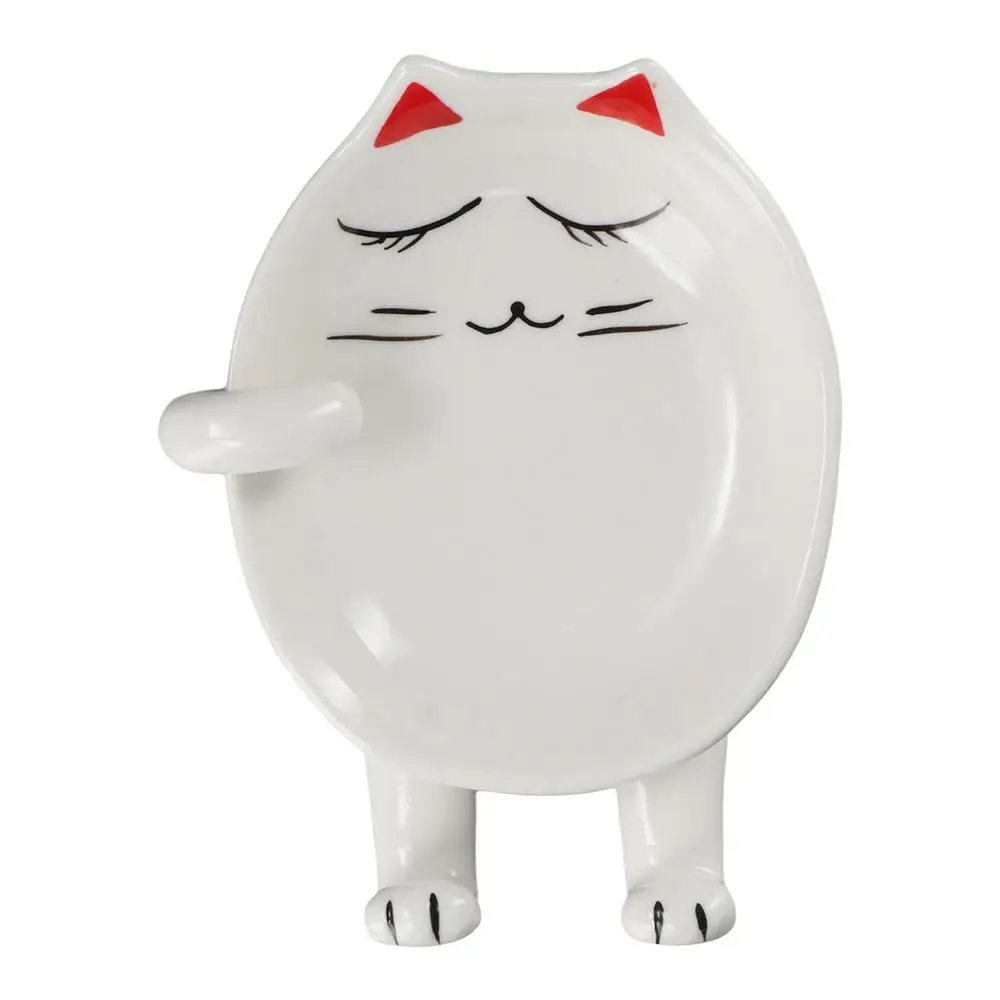 Ceramic Cat Spoon Rest Prevents Spoon Dropping Cartoon Utensil Holder Spatula Holder for Stove Top/Countertop/Restaurant