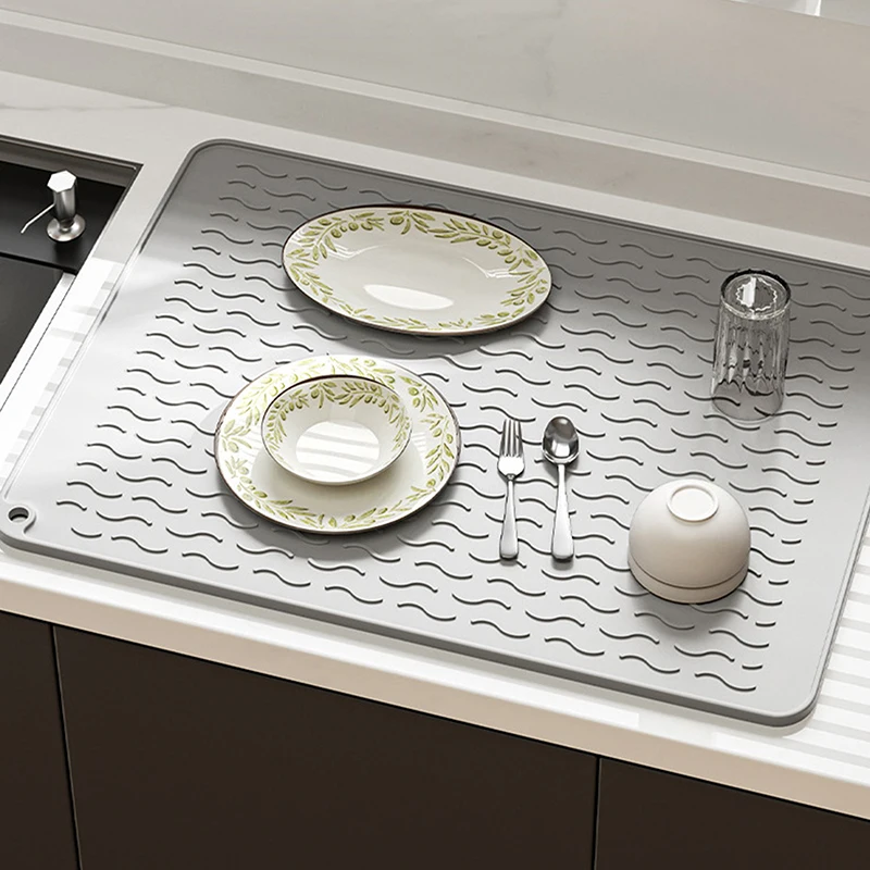 55*45cm/45*40cm Silicone Drying Mat Heat Resistant Non-Slip Draining Mat Kitchen Countertop Drip Tray Sink Pad
