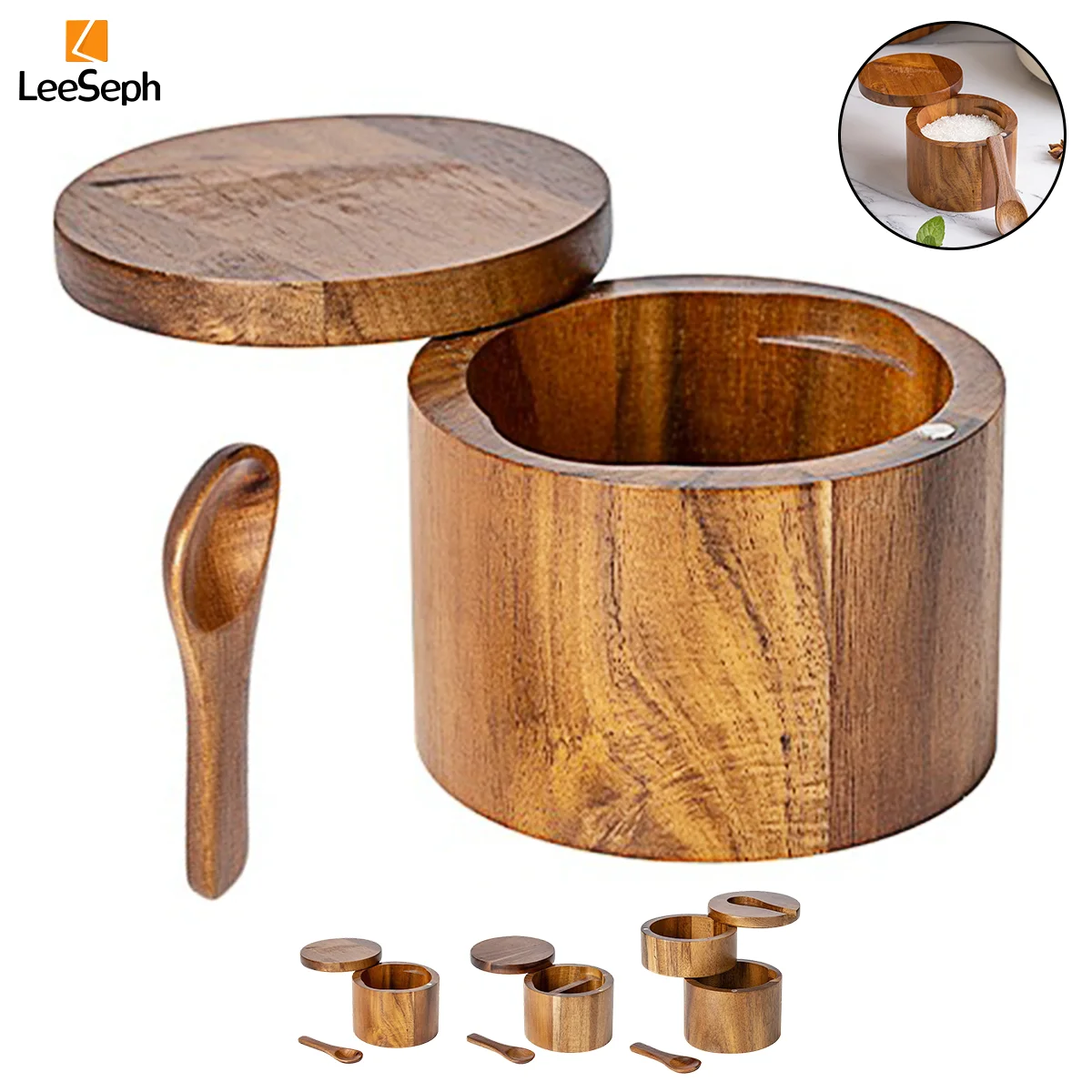 Leeseph Acacia Wood Salt or Spice Box with Swivel Cover, Perfect Spice Container for Kitchen, Close at Hand on Your Countertop
