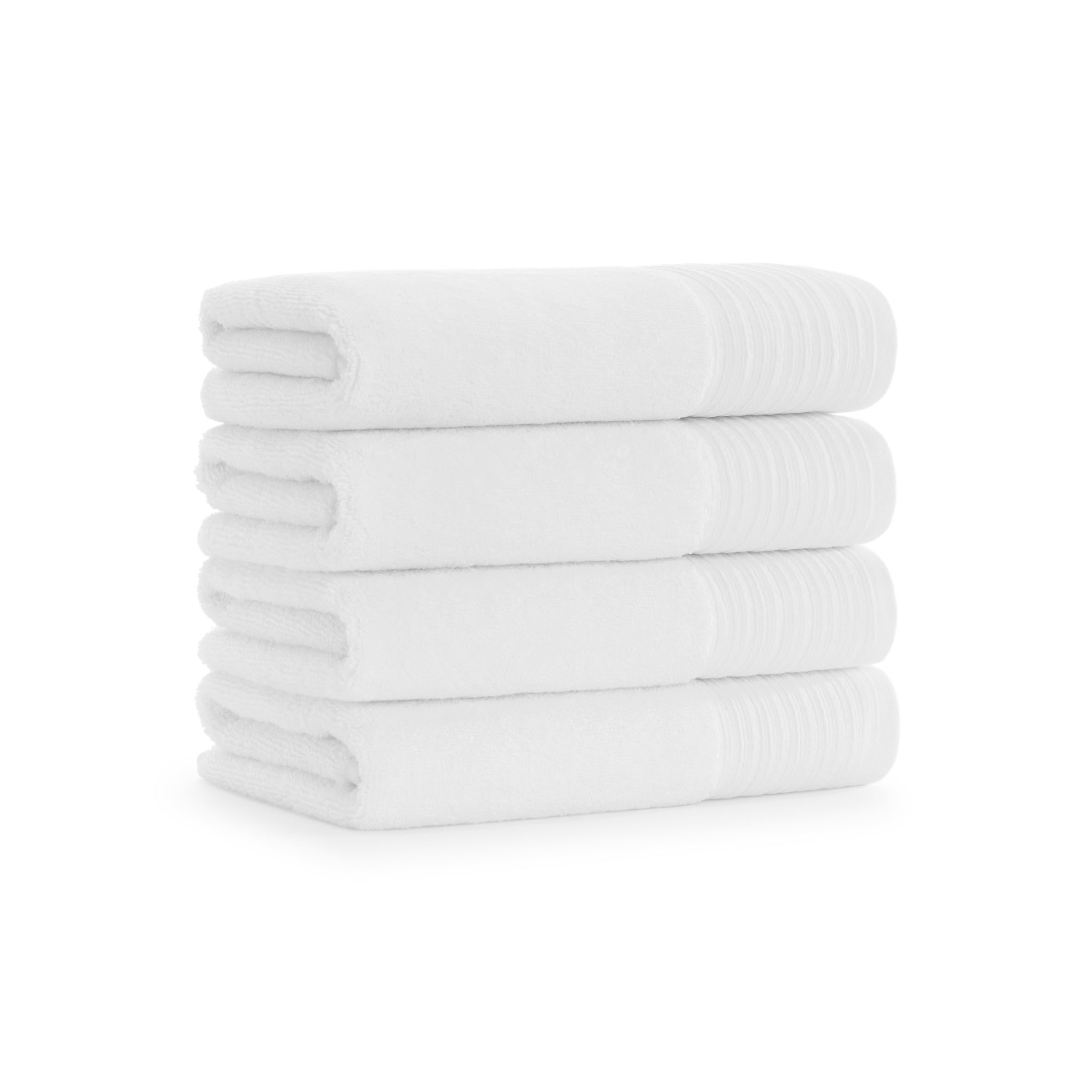 This quality line of 16x28 in. hand towels for the bathroom are available in six colors and are made from premium soft 100% ringspun cotton. These hand towels are decorated with a stylish raised matching stripe dobby border and come in a bulk pack...