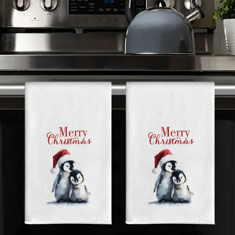 2Pcs, Christmas Red Hat Penguin Family Kitchen Towels, 40Cm*60Cm Towel Set, Super Absorbent Soft Cleaning Cloth, Cooking and Baking Tea Towel, Tea Towel, Hand Towel, Cleaning Cloth, Dishcloth, Kitchen