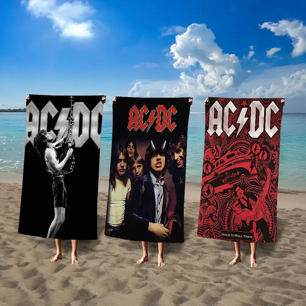 AC_ DC Classic Band Bath Towel Microfiber Soft Water Absorbing Breathable For Girl Kids Decorative Cartoon Beach Towel