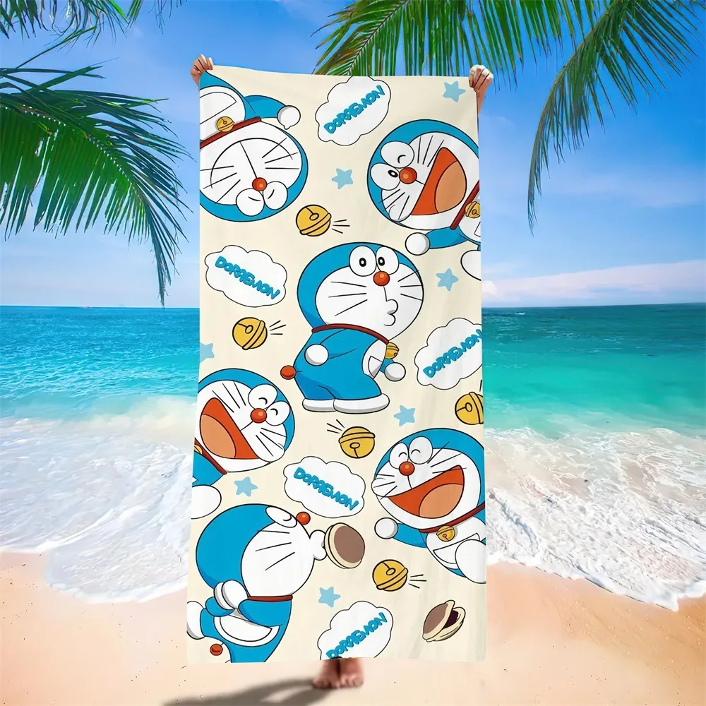 Doraemon Beach Towel Cartoon Cute Printed Bath Towel Microfiber Robotic Cat Swimming Quick Dry Comfortable Soft Beach Towel
