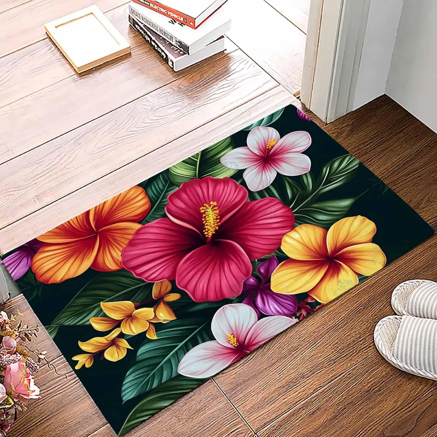 Tropical Plants Flowers Leaves Welcome Doormat Decor Kitchen Corridor Balcony Rug Bathroom Anti-slip Mat Bedroom Beside Foot Mat