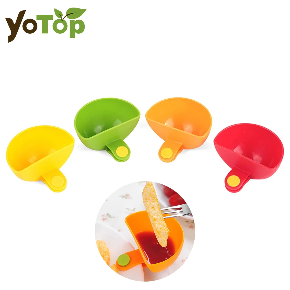 4Pcs/Set Kitchen Dipping Bowl Sauce Holder Hold Seasoning Dishes Dip Clip Bowl Plate Holder Assorted Colors Plate Clip Holders