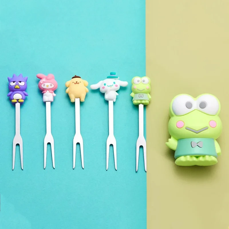 5pcs/set Kawaii Stainless Steel Fruit Fork Cute Keroppi Cartoon Fruit Fork Mini Home Frog Fruit Stick Kid Dessert Party Fork Set
