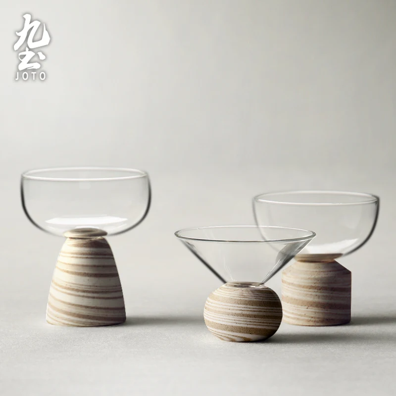 JOTO Teacup Glass Teacup with Wooden Base Handmade Teacup Set Transparent Teacup XCBR0090