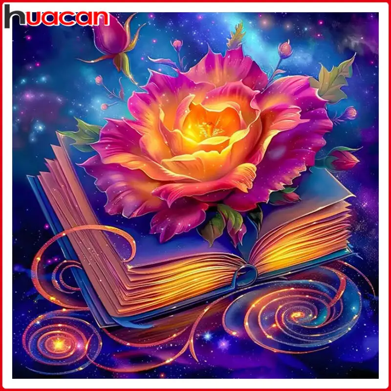 Huacan Full Square Round Diamond Painting Set Creative Flower Book Embroidery Mosaic Fantasy Home Decor