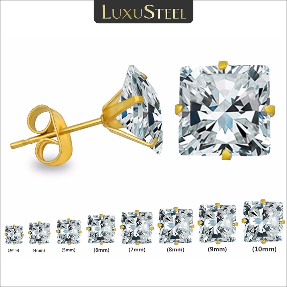 LUXUSTEEL 10Pairs 316L Stainless Steel Different Color Round/Square Shaped Brilliant Cubic Zircon Stud Earrings Sets Bijoux  Read more