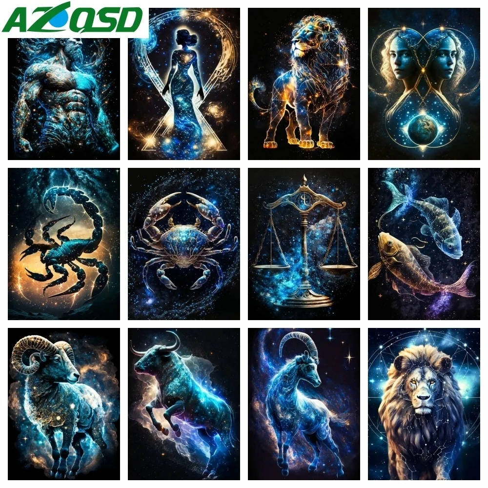 AZQSD Diamond Painting 5d Catle Animal Mosaic Cross Stitch Embroidery Lion Cow Constellation Starry Sky Landscape Wall Decor