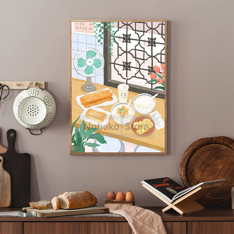 Painting Wall Art Pictures Home Room Modern Kitchen Decoration Asian Food Illustration Posters Chinese Bakery Prints Canvas