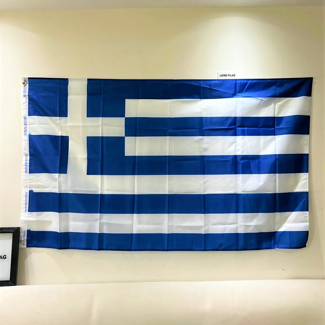 Greek Flag Banner Tapestry Multiple Sizes 2D Print Blue White Cross Theme Fade Resistant Polyester Indoor Outdoor Festive Proud