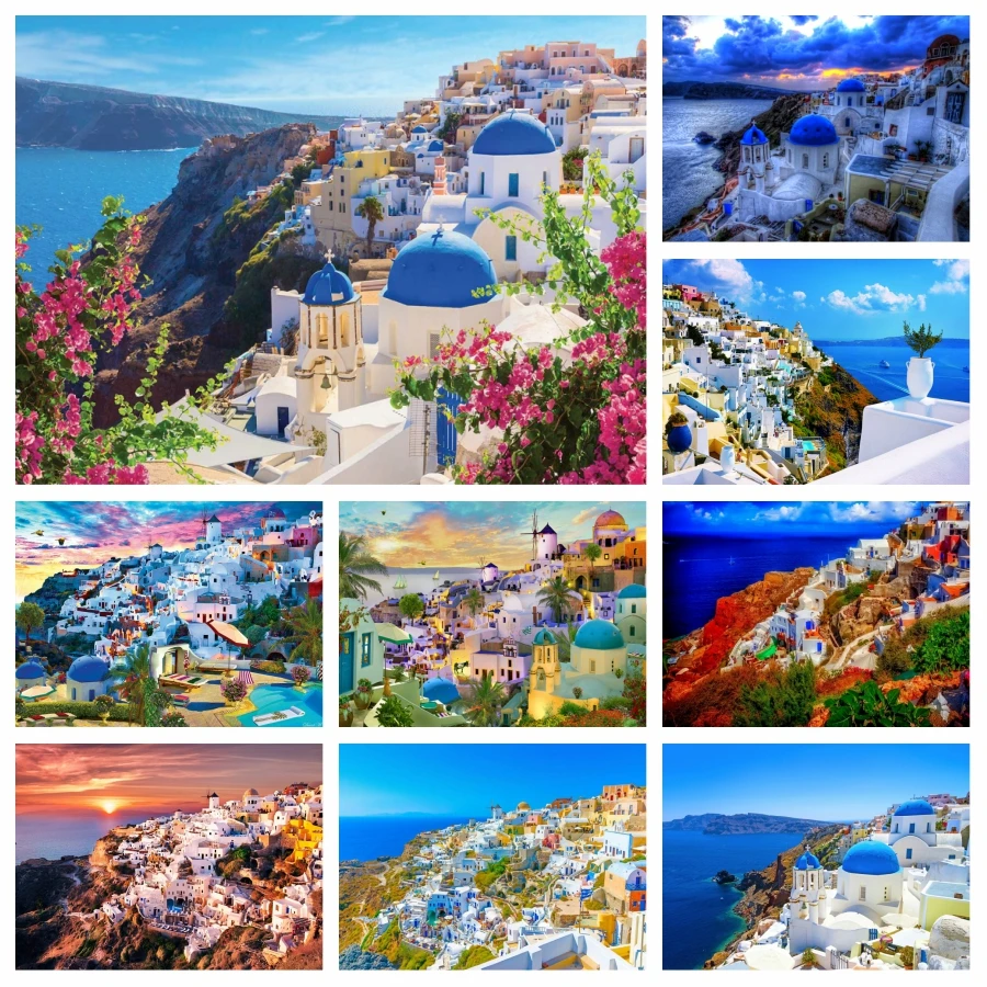 Aegean Sea Santorini Greece Island Sunset Scenery Diamond Art Painting Kits Greece Oia Seaside Town Landscape Cross Stitch Decor  Read more