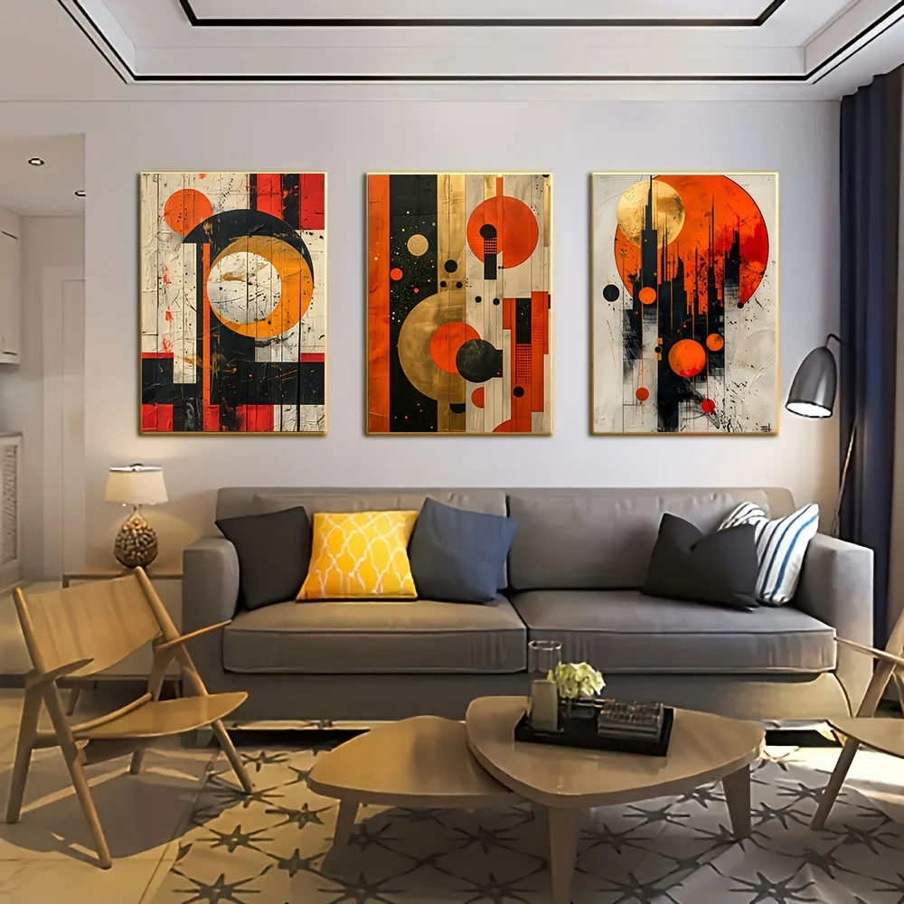 3pcs Bohemian Style Canvas Art Set - Modern African Inspired Abstract Posters, Frameless Wall Decor for Living Room, Bedroom, Ho
