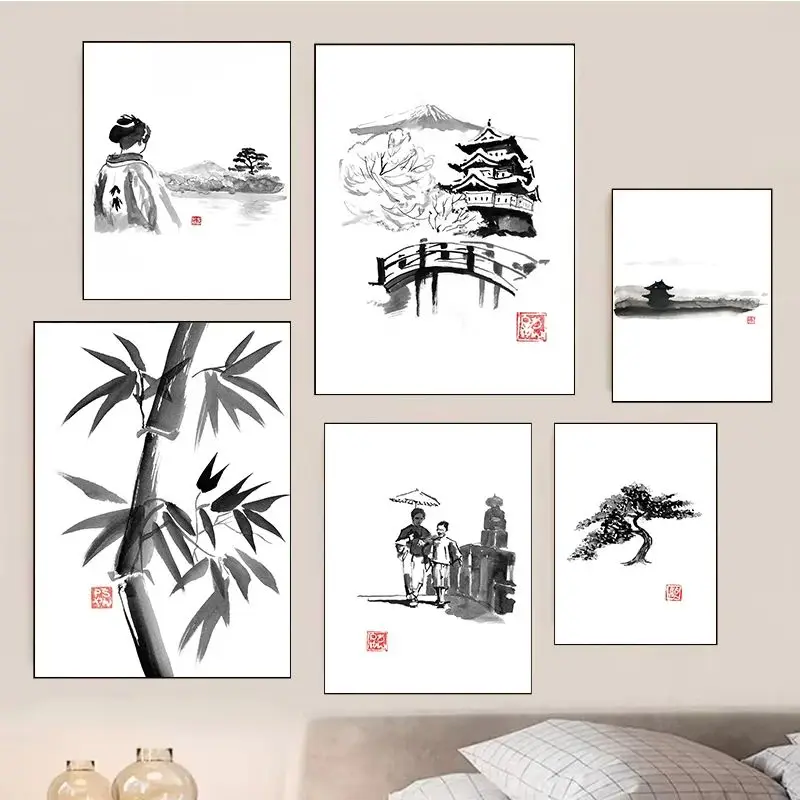 Japanese Art Ink Painting Bamboo Warrior Poster Zen Canvas Painting Wall Art Picture for Living Room Home Office Decor Aesthetic  Read more