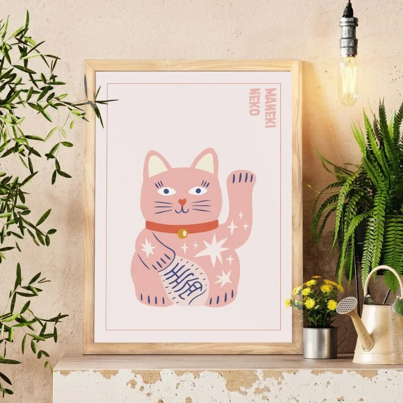 Lucky Cat Maneki Neko Retro Japanese Posters Prints Canvas Painting Wall Art Pictures for Kids Room Home Decor Gift Cat Lovers