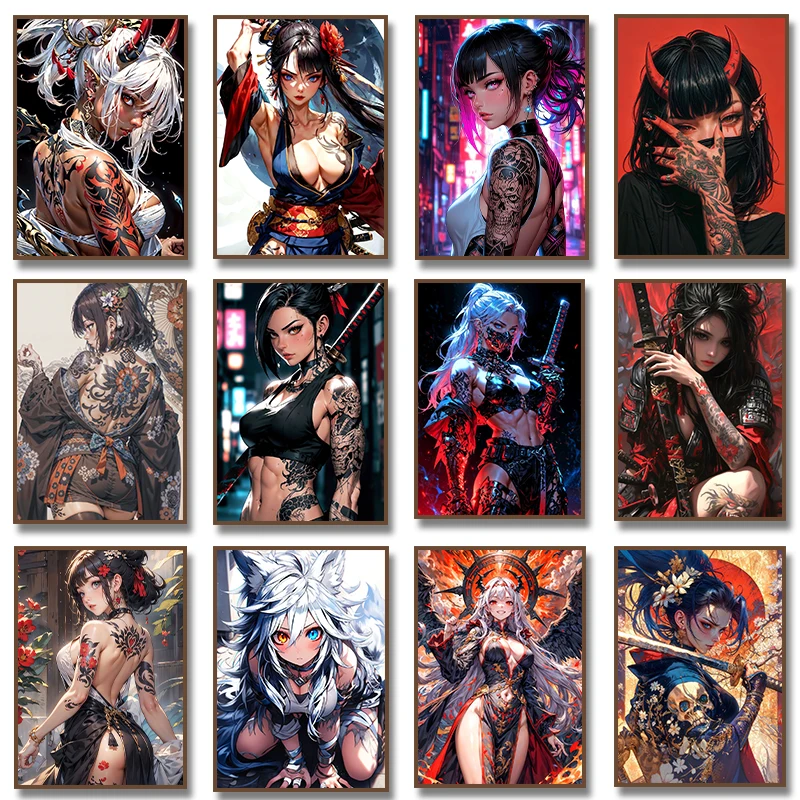MINISO Sexy Beauty Anime Tattoo Girl Canvas Painting Wall Art Japanese Geisha Poster Prints Poster for Living Room Home Decor