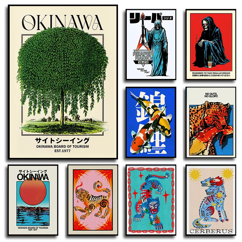 Japan Okinawa Green Tourism Willow Sunset Canvas Poster Ghost Tiger Wall Art Prints for Living Room Modern Halloween Home Dec  Read more