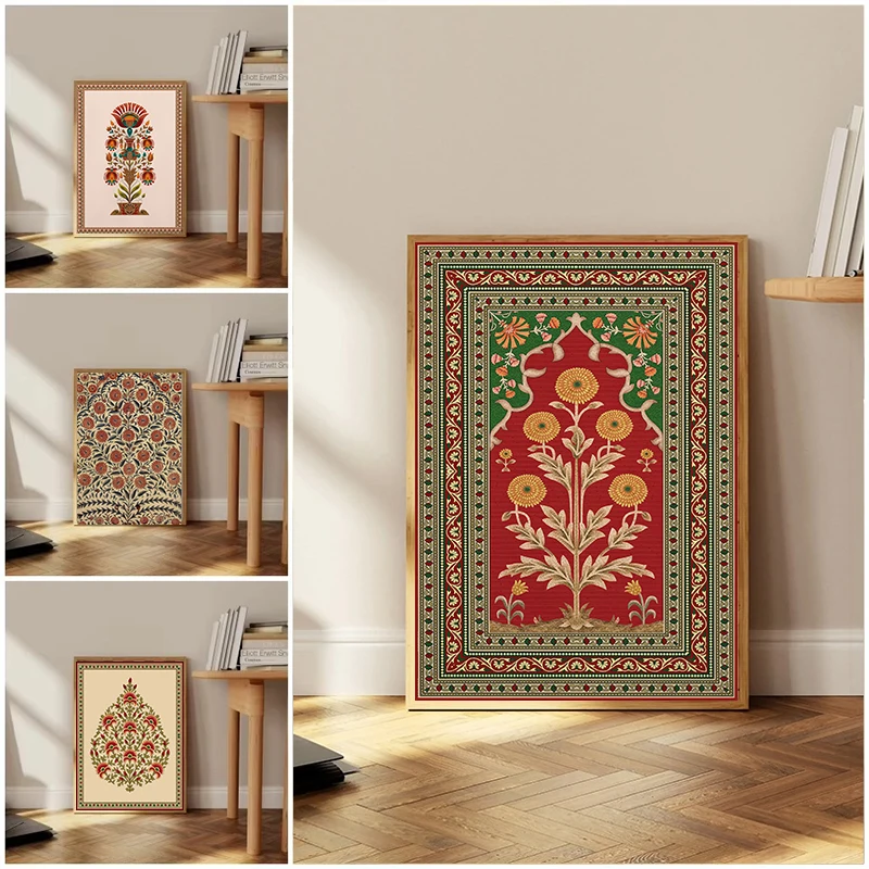 Indian Folk Art Persian Floral Print Poster Vintage Tree of Life Lotus Flower Canvas Painting Wall Picture Home Decor Cuadros