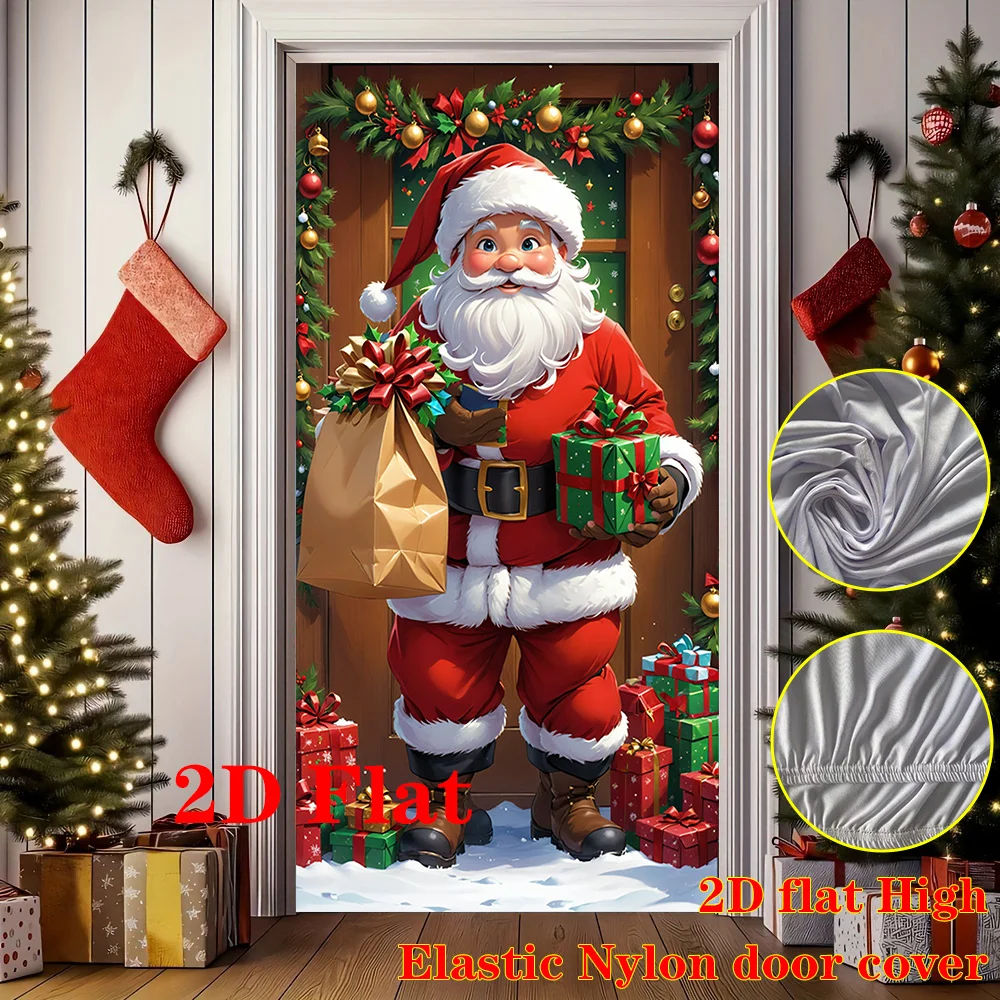 2D door banner, 1 roll 2D flat high elasticity Santa Claus door curtain - stretchable self-adhesive Christmas decoration