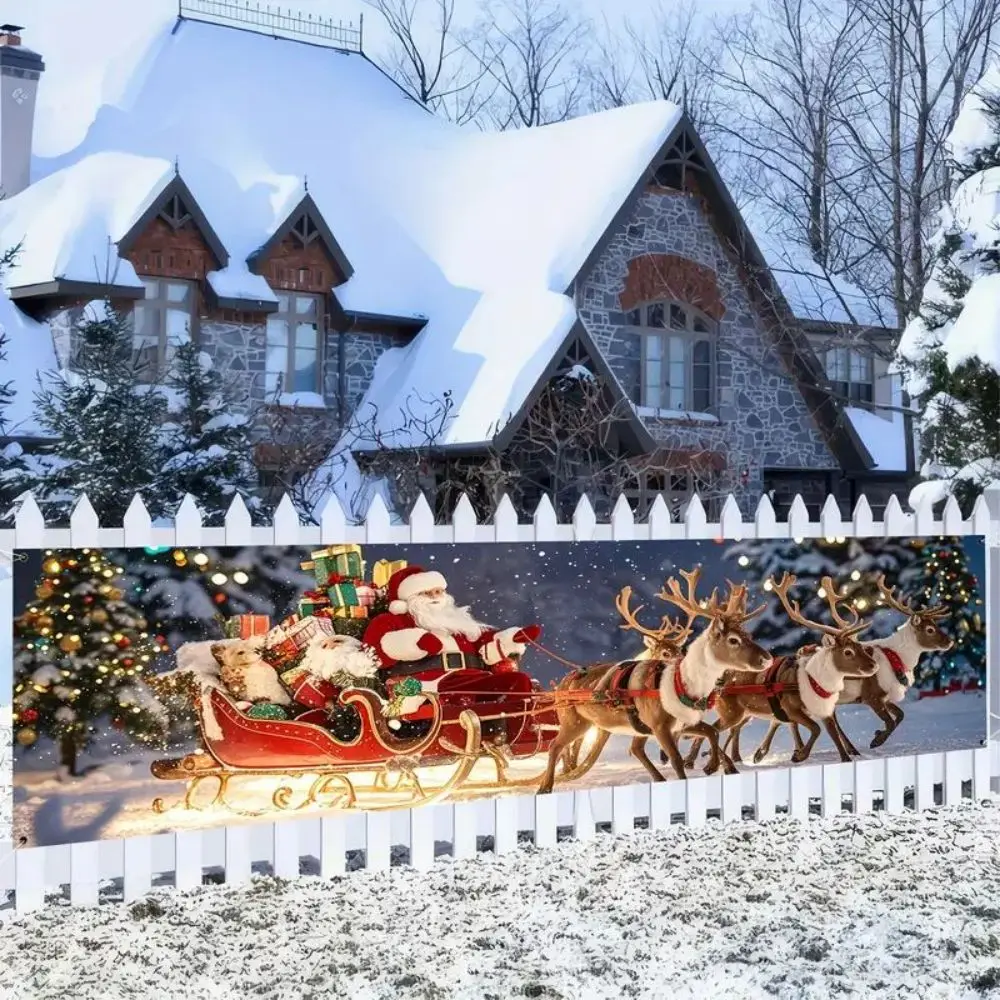 VIKAMA Christmas Banner, Christmas Santa, Reindeer Sleigh, Hanging Background, Family, Outdoor, Holiday, Winter Party Decoration