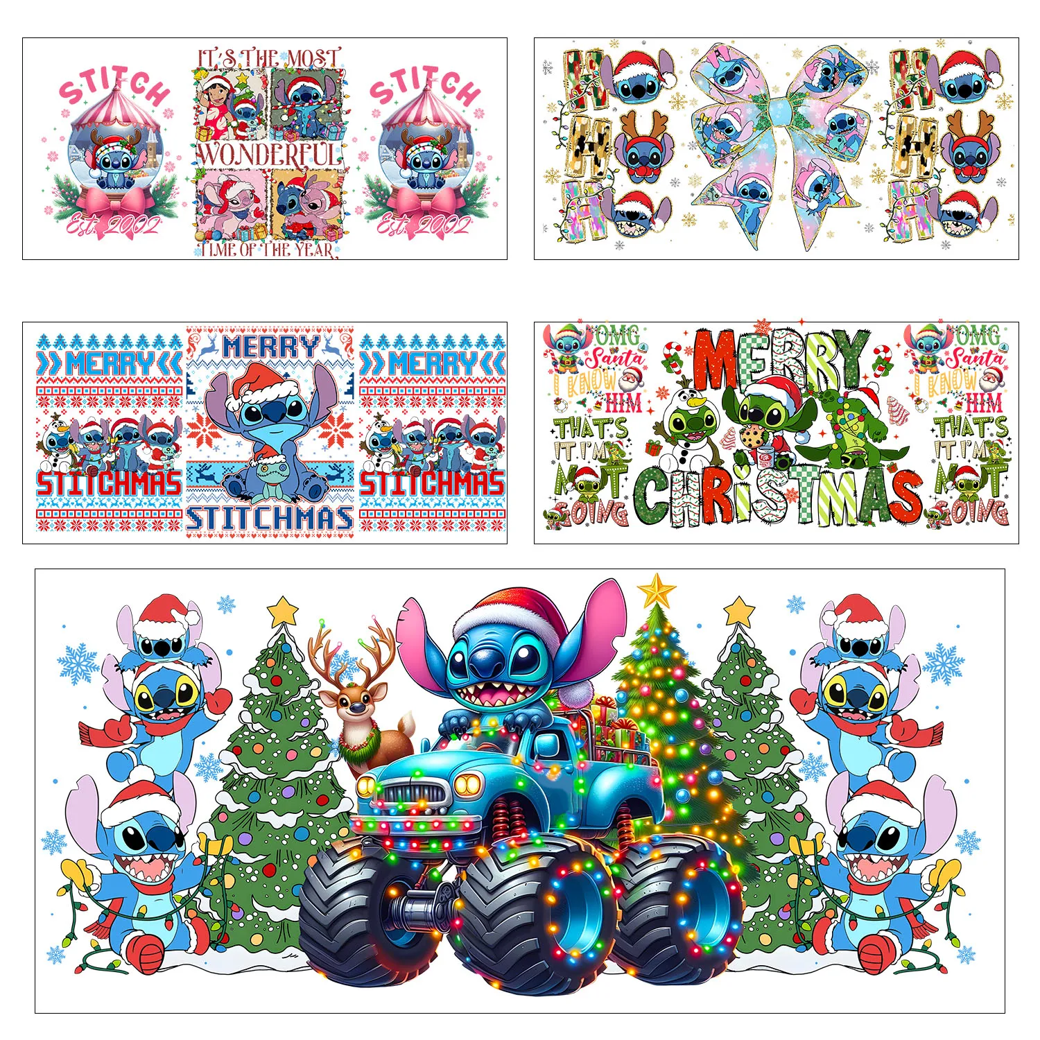 1pcs 5pcs Christmas Vibe Cute stitch Series easy peel waterproof DIY Decals 3D transfers uvdtf stickers 16oz uv dtf cup wraps