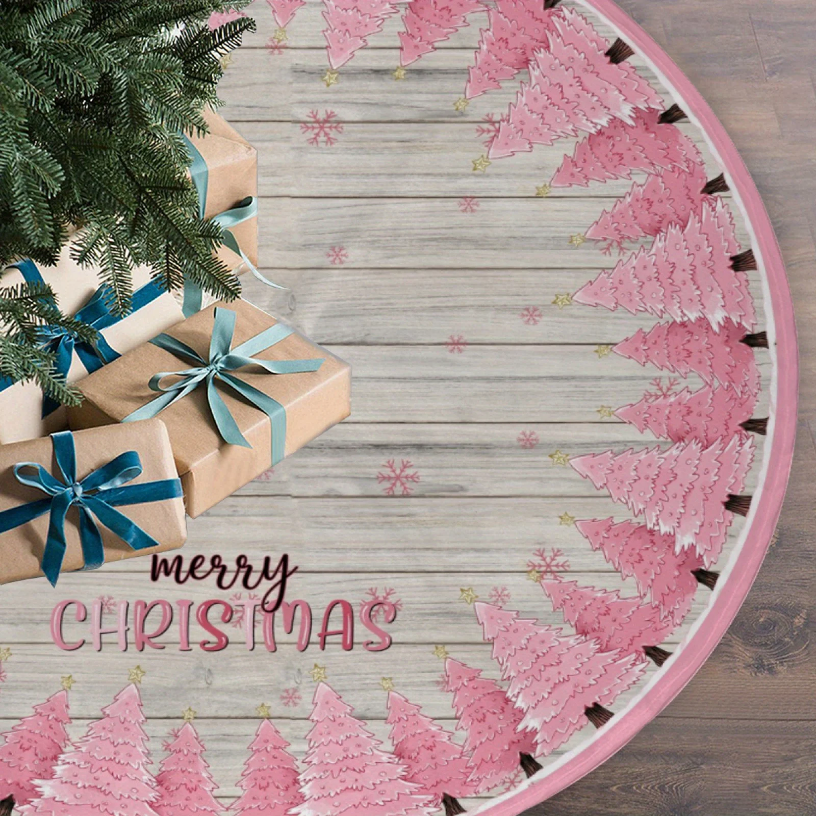 VIKAMA Christmas Tree Skirt Home Christmas Decoration Cute Father Christmas Pink Pine Tree Pattern Christmas Tree Skirt Cushion