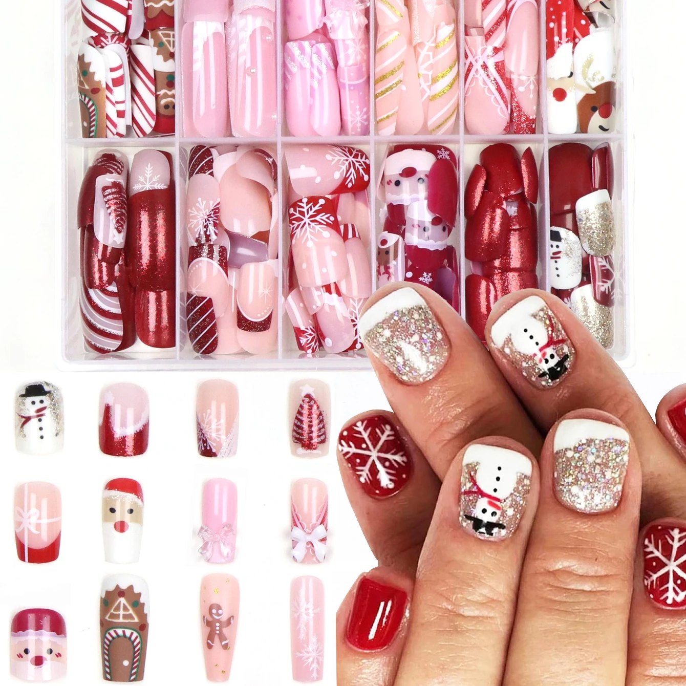 288PCS-12 types of Christmas Holiday Nails With Christmas Tree Cane Reindeer Snowflakes Santa Claus And Other Christmas Elements