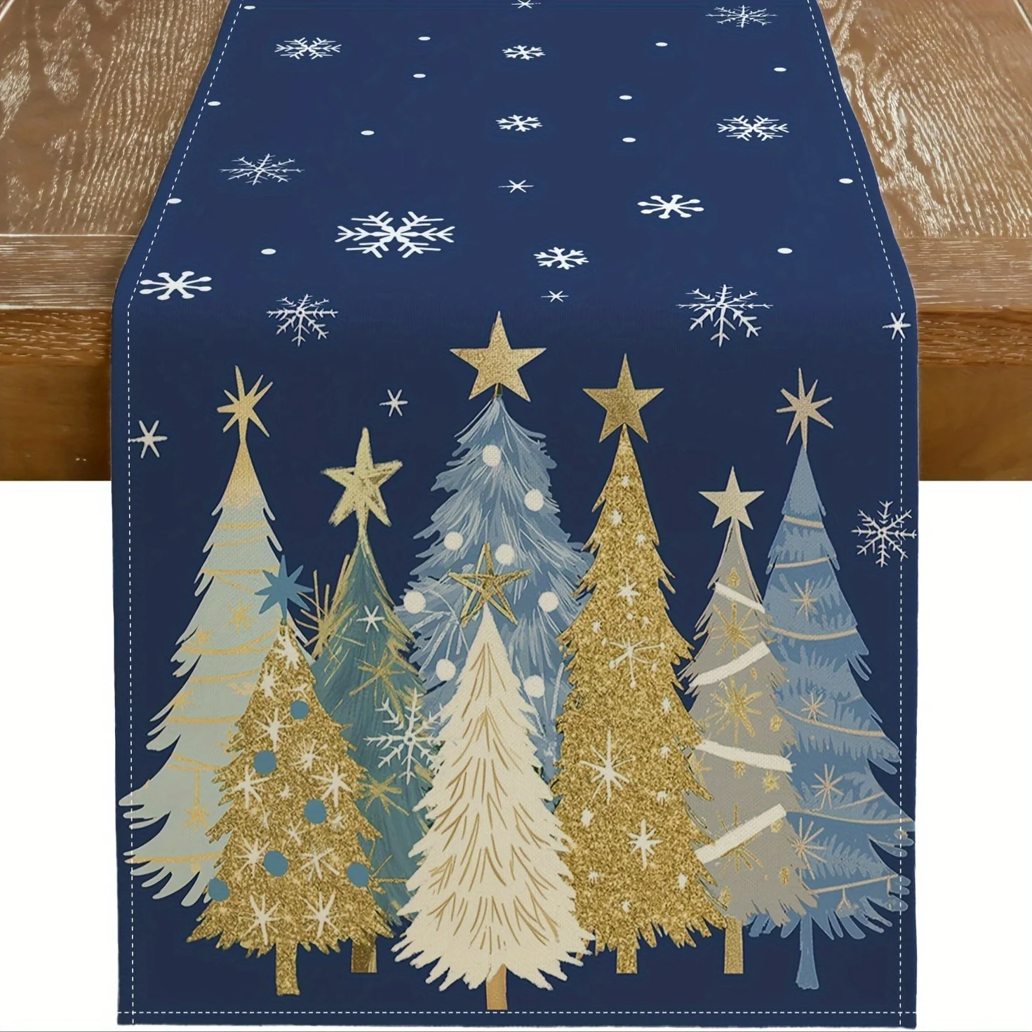 Bohemian Christmas navy blue with gold Christmas tree snowflakes and stars graphic durable party farmhouse style holiday decorat