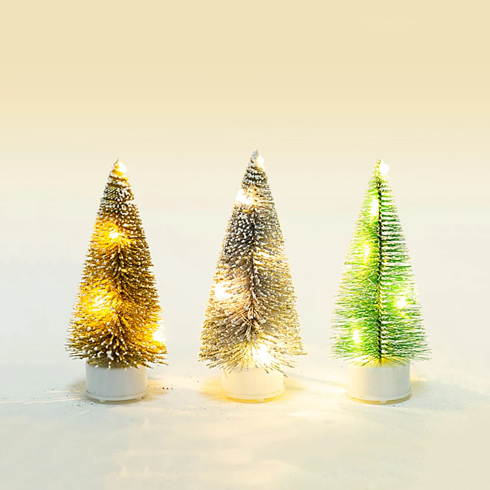 12Pcs Mini Christmas Tree DIY Ornament Artificial Pine Sisal Snow Landscape Xmas Trees Decoration Tabletop Navidad Decor Gifts