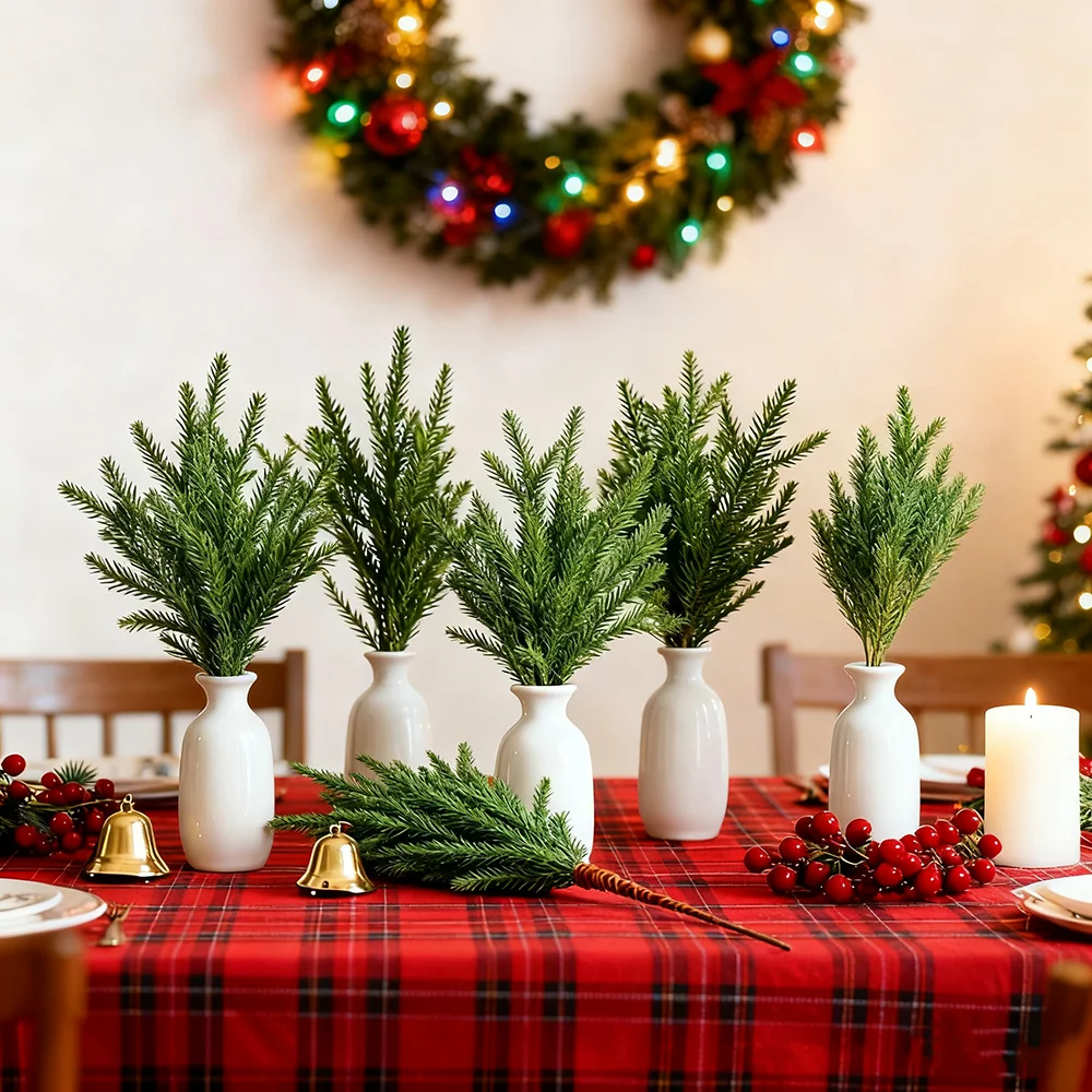6pcs Christmas Norfolk Pine Branches, Norfolk Pine Artificial Christmas Stems DIY Crafts Faux Christmas Greenary