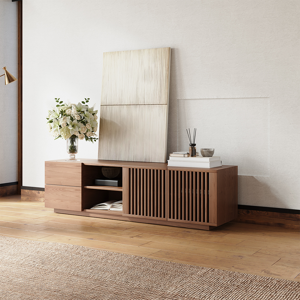 [Aesthetic Design]Mid-century modern style, characterized by simplicity and elegance, with a geometric aesthetic design. creating a sense of stability and sophistication. The design of the latticed door panels is minimalist, enhancing the interplay...  Read more