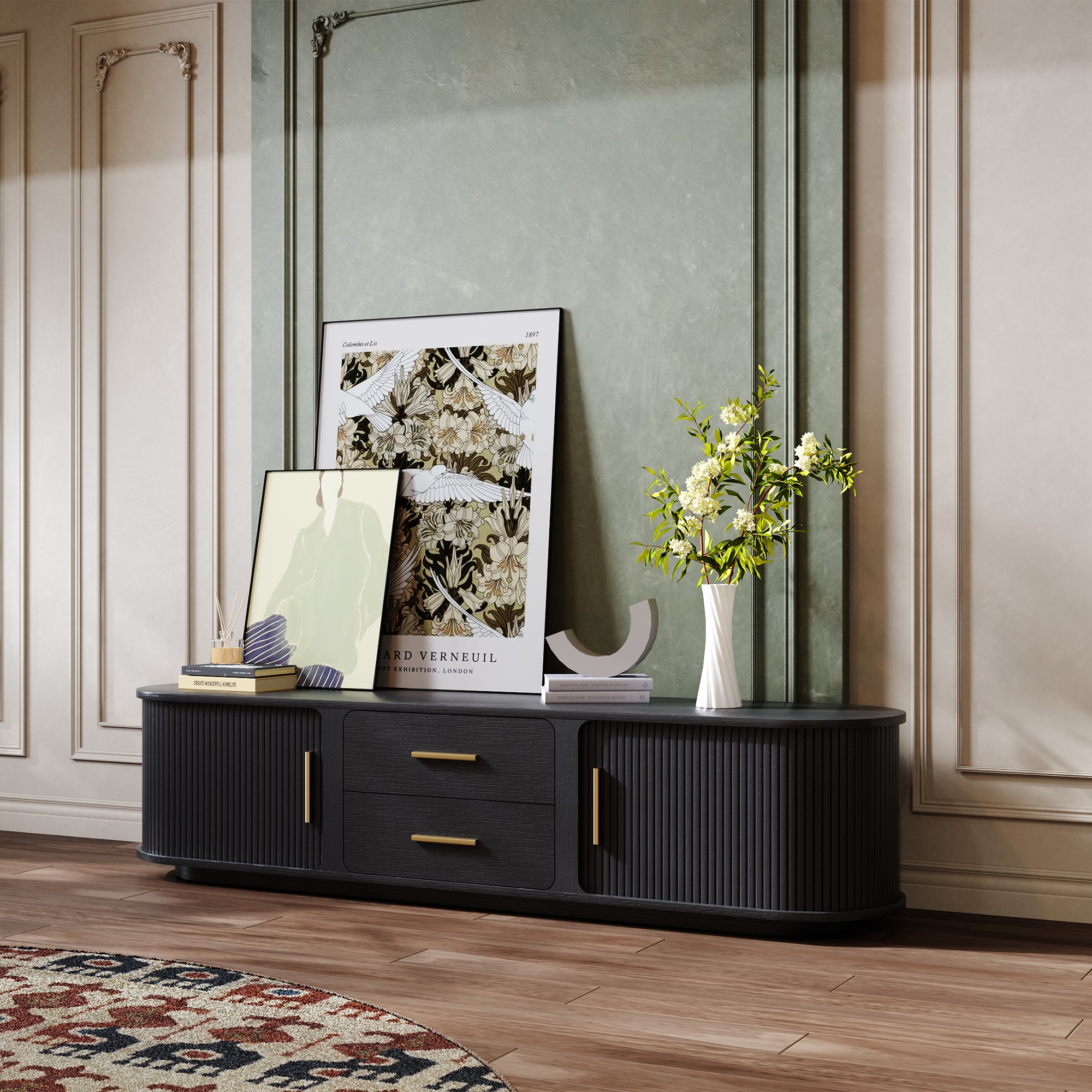 64" Fluted TV Stand for TVs up to 74 Inch, Modern Entertainment Center TV Console Media Console Credenza Table with Adjustable S