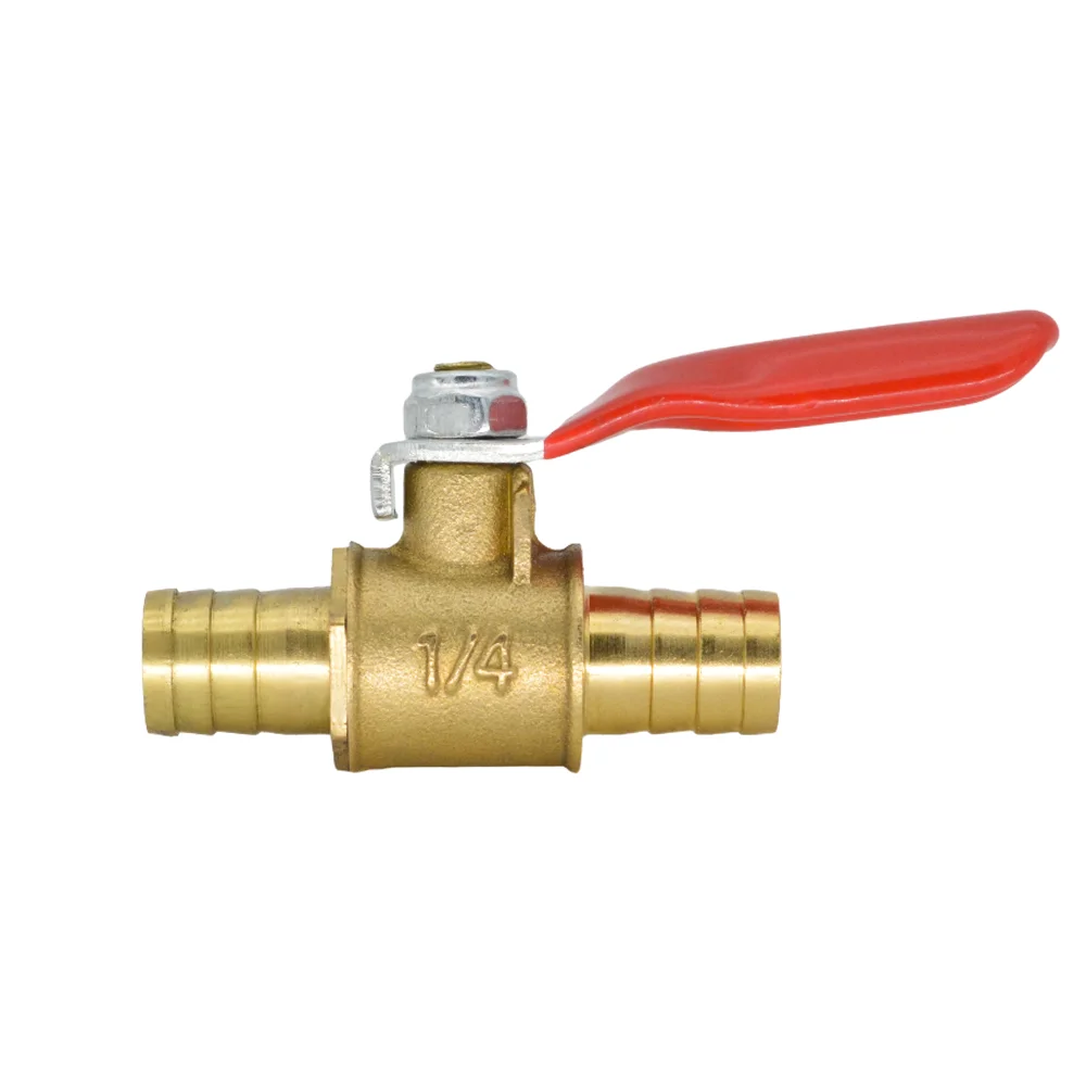 YQBS 6mm-12mm Brass Water Oil Air Gas Fuel Line Shutoff Ball Valve Pipe Fittings Red Handle small Valve Hose Barb Inline