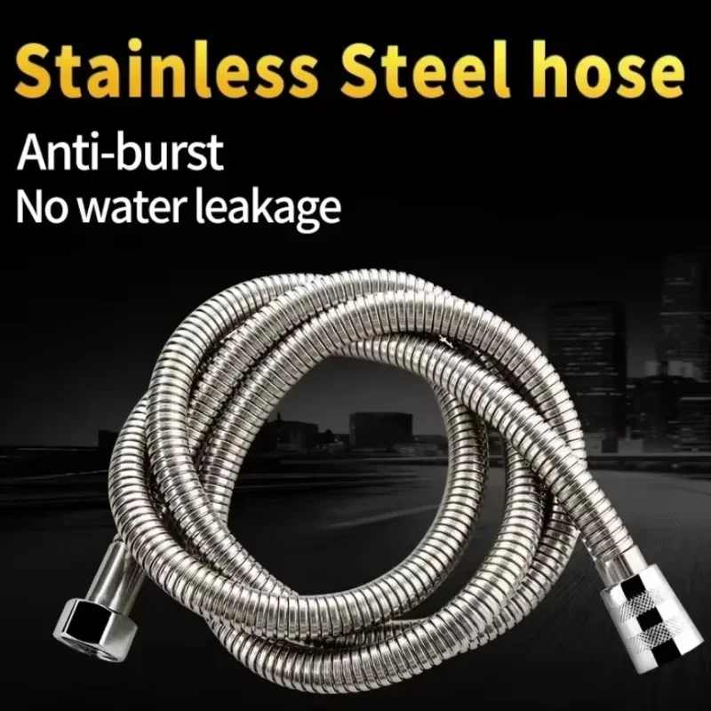 1.5/2M Black/silver SUS 304 Flexible Shower Hose Long Bathroom Shower Pipe Extension Water Pipe Pull Pipe Bathroom Accessories